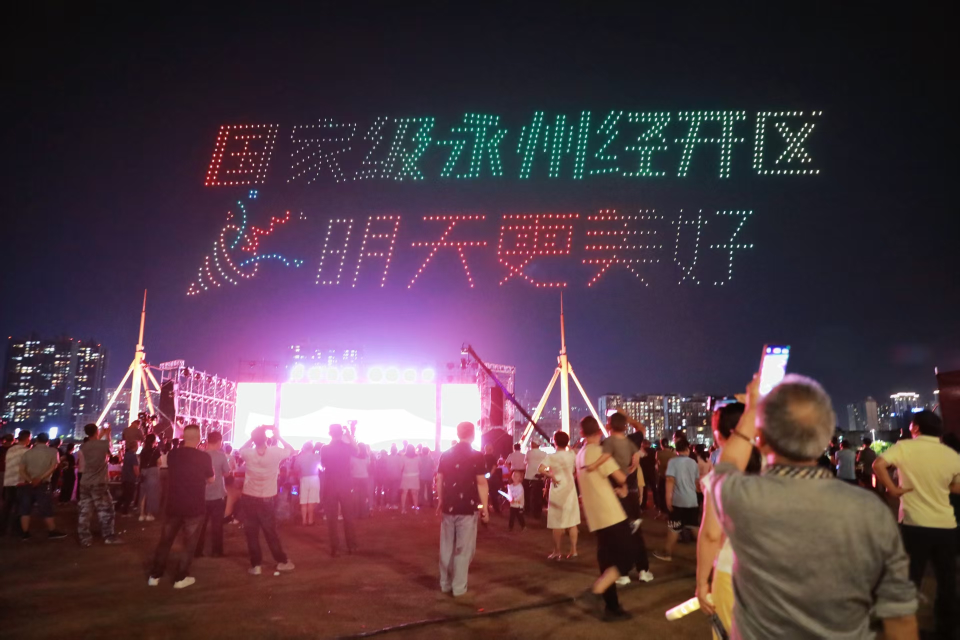 ?晚會(huì)在激情四射的開場(chǎng)舞《幸福永州》中拉開了序幕。歌曲《一路生花》《我的未來(lái)不是夢(mèng)》《奔跑》《永沖鋒》以高昂的熱情、嘹亮的歌聲和舞蹈演出新時(shí)代工人的風(fēng)采。舞蹈《工匠精神》為工匠謳歌,為工匠立傳,向精益求精、一絲不茍、追求卓越的工匠精神致敬。小品《緣聚經(jīng)開 共創(chuàng)未來(lái)》以經(jīng)開招才引智工作中的真實(shí)片段為原型,在讓人捧腹之余,藏著經(jīng)開“求賢若渴”的誠(chéng)意,“人才與園區(qū)雙向奔赴”的鮮活圖景。中秋主題歌曲聯(lián)唱《看月亮爬上來(lái)》《若是月亮還沒來(lái)》《聲聲慢》《但愿人長(zhǎng)久》一首首歌串起中秋的情愫,也唱進(jìn)在永務(wù)工者的心里。歌伴舞《花好月圓夜》《永州經(jīng)開夢(mèng)飛揚(yáng)》、溫情歌曲《世界贈(zèng)予我的》、群舞《燈火里的中國(guó)》、無(wú)人機(jī)燈光秀等特色節(jié)目輪番上演,贏得現(xiàn)場(chǎng)觀眾陣陣掌聲,持續(xù)將現(xiàn)場(chǎng)氣氛推向高潮。晚會(huì)在大合唱《歌唱祖國(guó)》中落下帷幕。